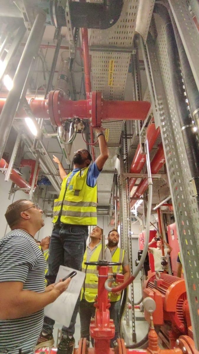 وشملت التجربة اختبار أنظمة سحب الدخان وتشغيل إنذارات الحريق ومعاينة مسالك الهروب وسلامتها، واختبار وتشغيل الطلمبات وتشغيل كافة الأنظمة المرتبطة بالسلامة والتحقق من جاهزية المبنى لاستقبال المرافق العامة والتشغيل الفعلي.