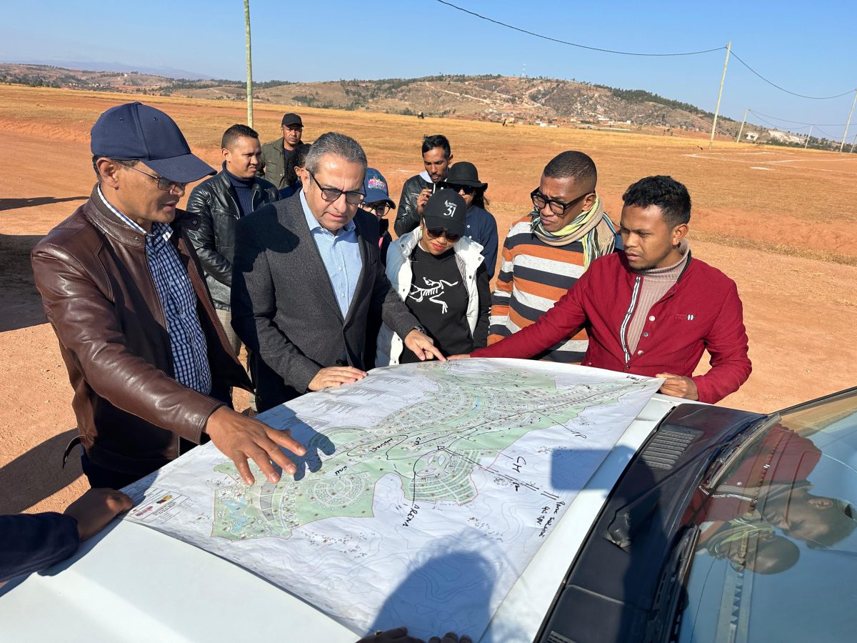 استهل المهندس خالد عباس الزيارة بجولة ميدانية بموقع مشروع المدينة الجديدة “تانا-ماسواندرو”، والذي يُعد المشروع الأبرز في مجال التنمية الحضرية في مدغشقر، ويمتد على مساحة حوالي 2340 فدان ويبعد عن العاصمة قرابة 28 كم، حيث تم الاطلاع على مخططات المشروع وما تم تنفيذه حتى الان مع طلب المخططات والرسومات الخاصة بالمدينة للمراجعة والتدقيق.