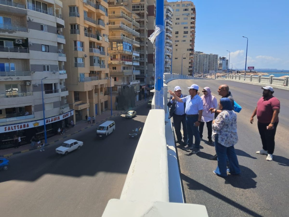 كما قام اللواء أ.ح مهندس محمود نصار، بتفقد أعمال تنفيذ إنشاء كوبرى محور السادات على مستويين لربط شارع السادات (٤٥) بالطريق الساحلى الدولى عند التقاطع مع شارع مصطفى كامل.